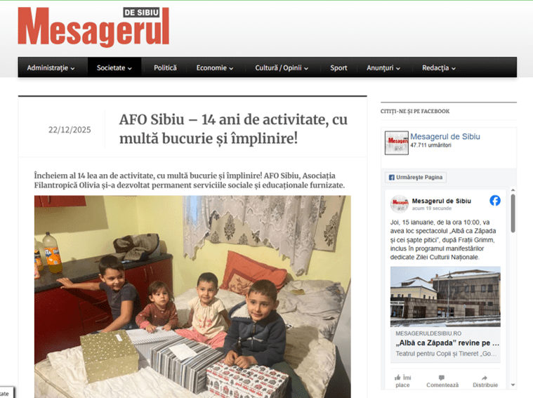 VEZI AICI ARTICOLUL PUBLICAT ÎN ”MESAGERUL DE SIBIU” – 22.12.2025